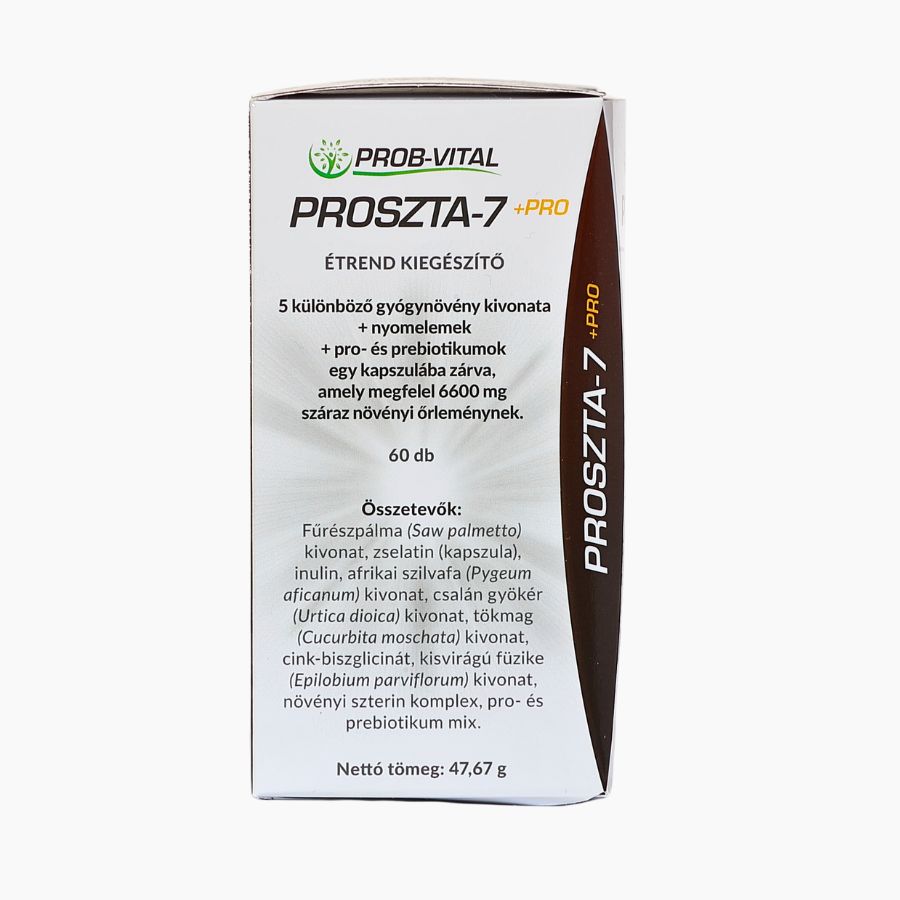 A Proszta-7+PRO hét célzott gyógynövény- és tápanyag-összetevőt egyesít pro- és prebiotikumokkal, hogy komplex módon támogassa a prosztata normál működését, a vizeletáramlást és a férfiak életminőségét. Bélben oldódó kapszulában készült, így a hatóanyagok ott szabadulnak fel, ahol a legjobban hasznosulnak.